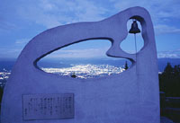 ■櫛形山 山梨県櫛形町 標高1600mから甲府盆地の夜景を一望できる展望台です。幸せの鐘越しに夕暮れであれば富士山、夜であれば夜景を望むことができるのがおもしろいです。 ここまでの山道程は2ヶ所ほど分岐がありますが、「アヤメ平」の標識を目印に進んでいってください。麓から約20分と少々道程はありますが、たどり着いたときの感動は大きいですよ。 |