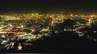 ■摩耶山(掬星台) 兵庫県神戸市灘区 「日本三大夜景が函館・神戸・長崎」ということは一般に良く知られていますが、ここ摩耶山が日本三大夜景であるということは意外と知られていません。また阪神大震災で摩耶ケーブルが5年ほど休止されていました。しかしながら現在でケーブルも再開して、さらに山頂には「マヤ・テラス」というおしゃれなカフェレストランもオープンして少しづつ知られてくるようになりました。 摩耶山は高度800mと函館山・稲佐山の300m級の山より遙かに高度がありますので、神戸・大阪市内はもちろんのこと生駒山上遊園地や関西国際空港の夜景まで見渡すことができます。 |