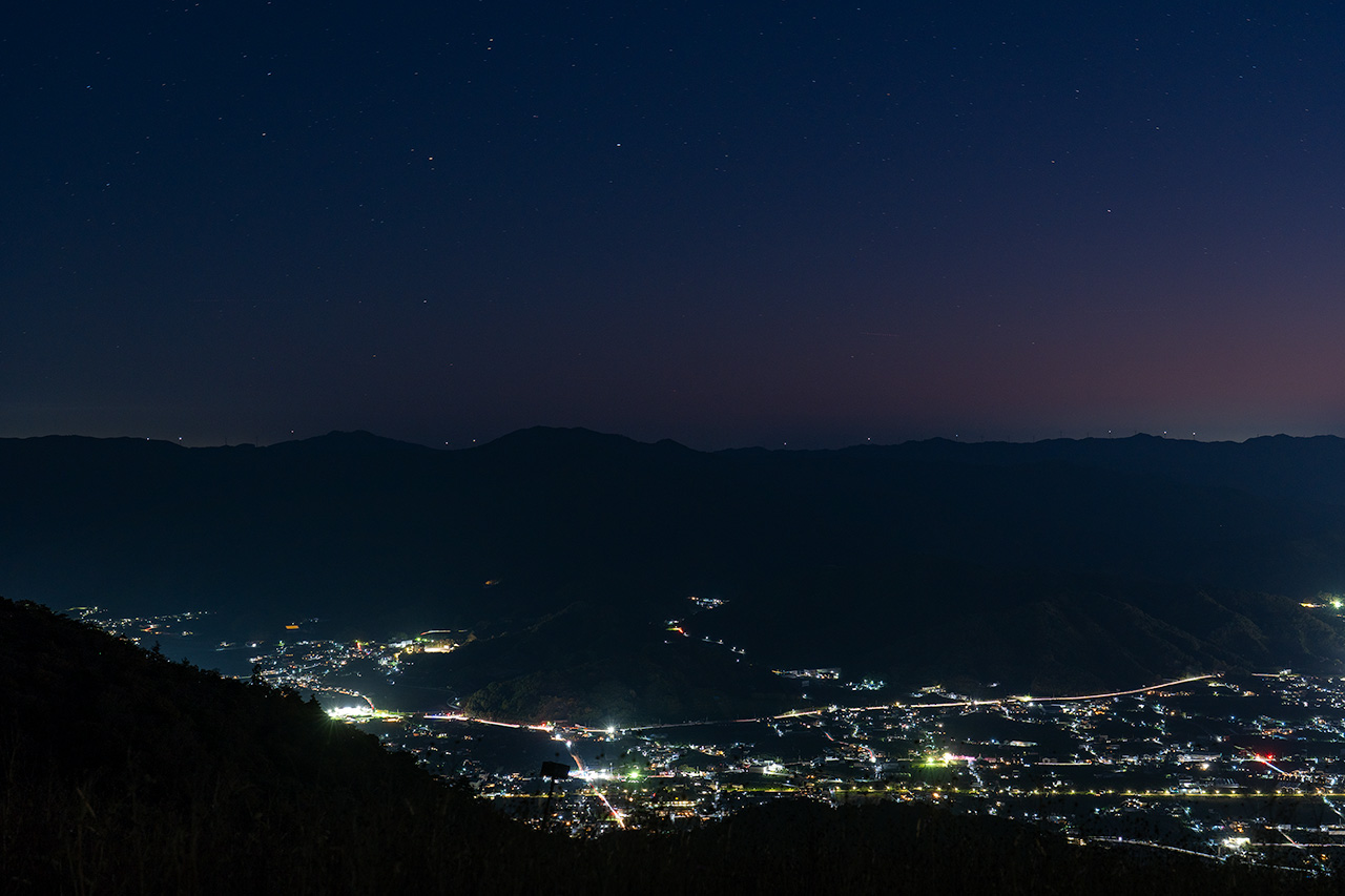秋になればコスモスが咲き乱れる標高586mの鷲ヶ峰山頂からは、湯浅広港と有田川によって、明暗に富んだ夜景が広がります。