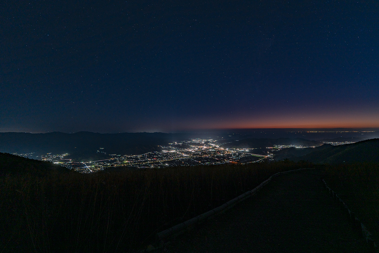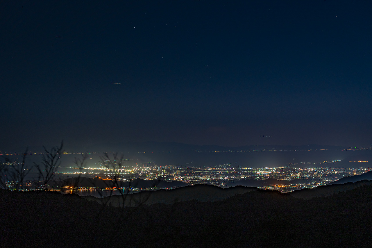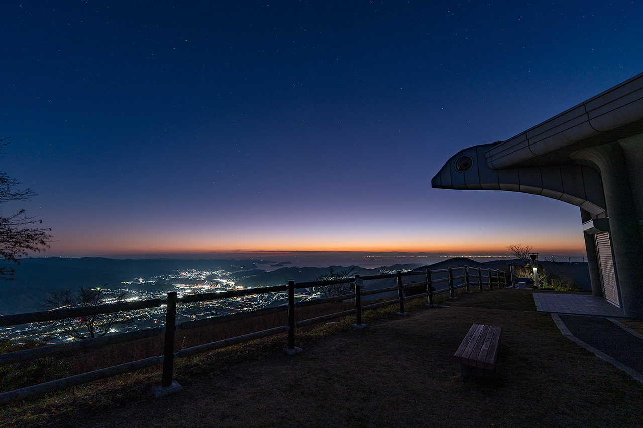 標高586mの鷲ヶ峰山頂には、空気の澄んだ日であれば、徳島の夜景まで望むことができる夜景スポットです。