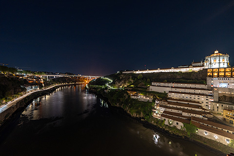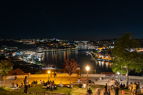 そして、その歴史地区の中央に架かるのがドン・ルイス1世橋です。夕暮れ時になると、ライトアップされた橋と世界遺産の街並みが織りなす夜景を眺めるため、多くの観光客がセーラ・ド・ピラル展望台に集まります。