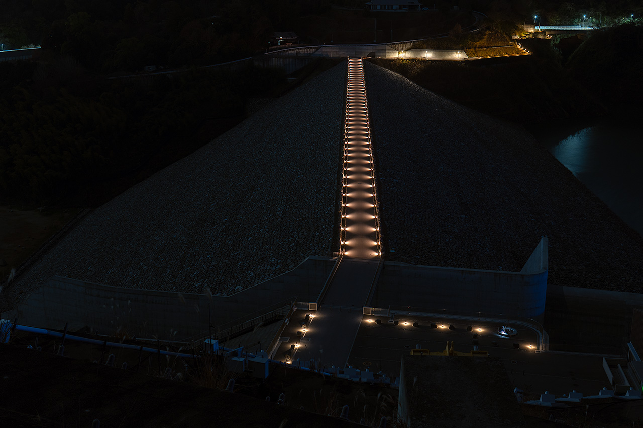 なおダム天端道路のライトアップは日没後の点灯、日の出後の消灯になっているため、夜間は常時点灯しています。