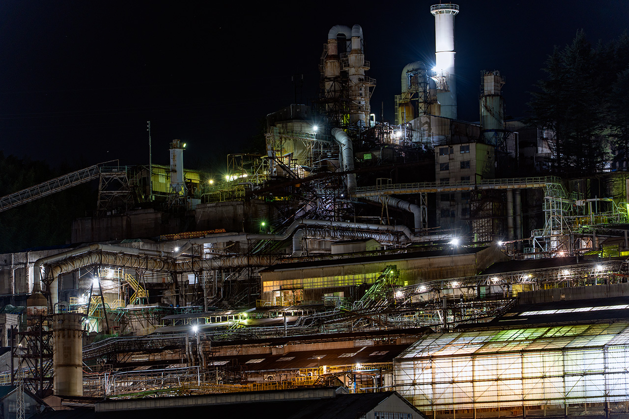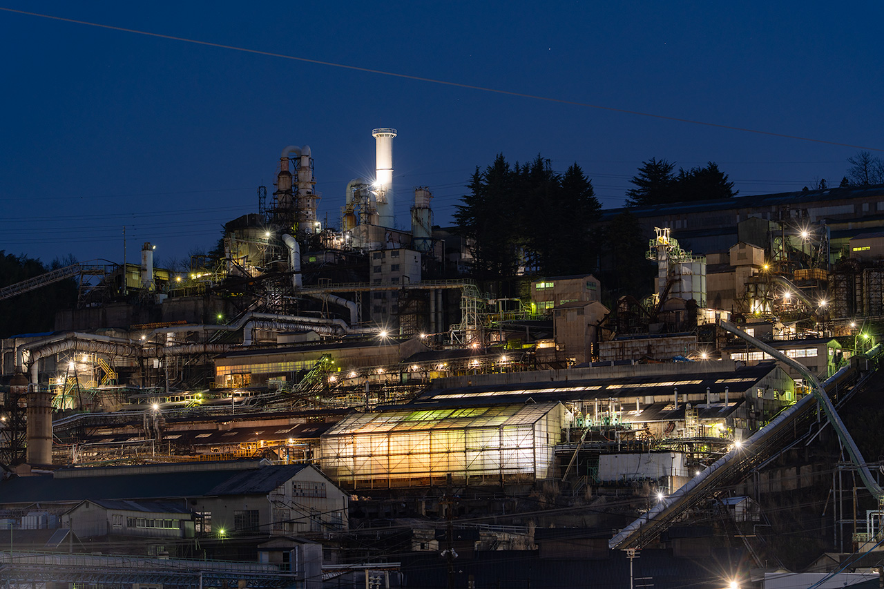 工場夜景で人気スポットである。2025年3月末に主要設備が操業停止になりましたが、市合併20周年を記念して、期間限定でライトアップが復活しました。