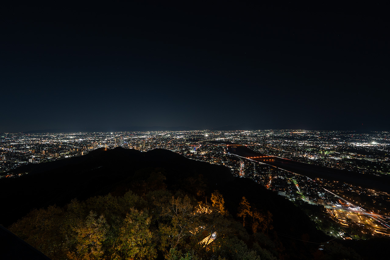 ぎふ金華山ロープウェーのナイター営業している期間のみ、金華山展望台が夜間利用できます。ここからは長良川から岐阜市内までの夜景を見渡せます。