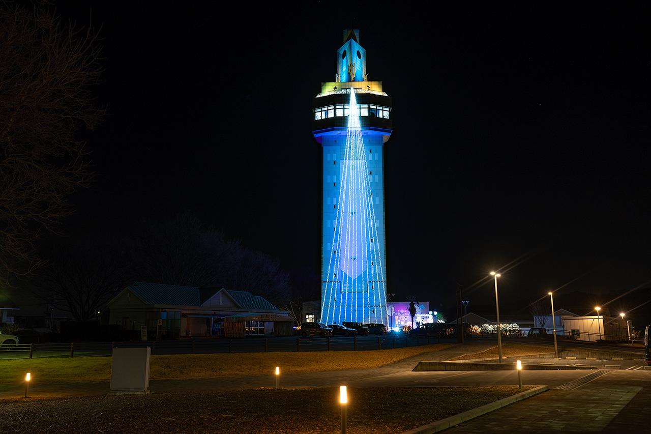 高さ56mシンボルタワー。高さ36mのところに展望室があります。光のページェント「HiKARi MiRAi」期間のみ夜間利用でき、360度の夜景を楽しめます。