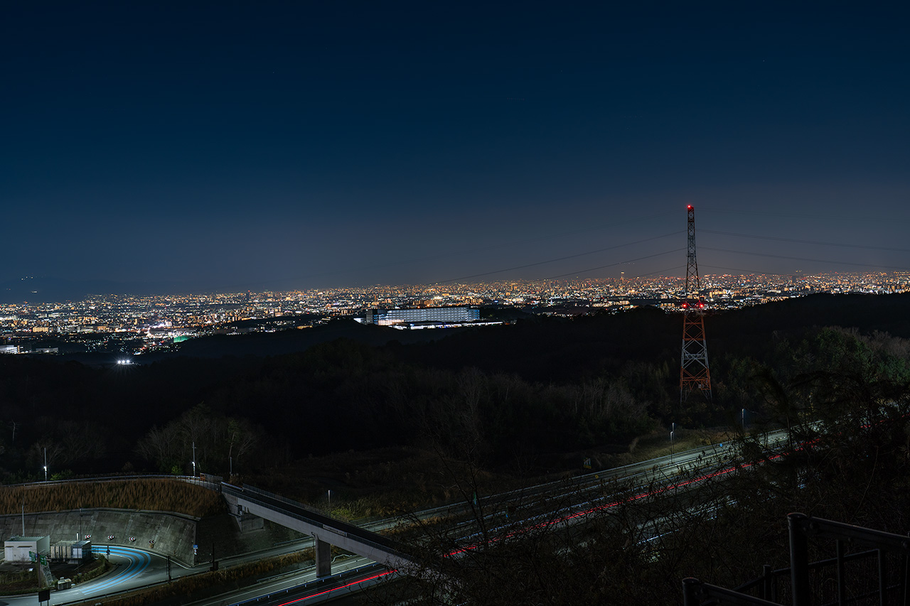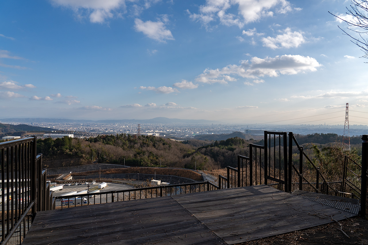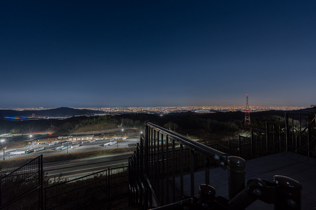 茨木千提寺PAから5分ほど場所にある展望台があります。約300段の階段を登っていくと、展望デッキがり、大阪市北部の夜景をパノラマに楽しめます。