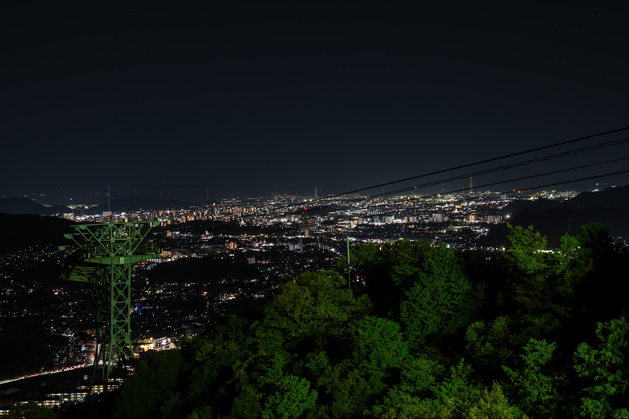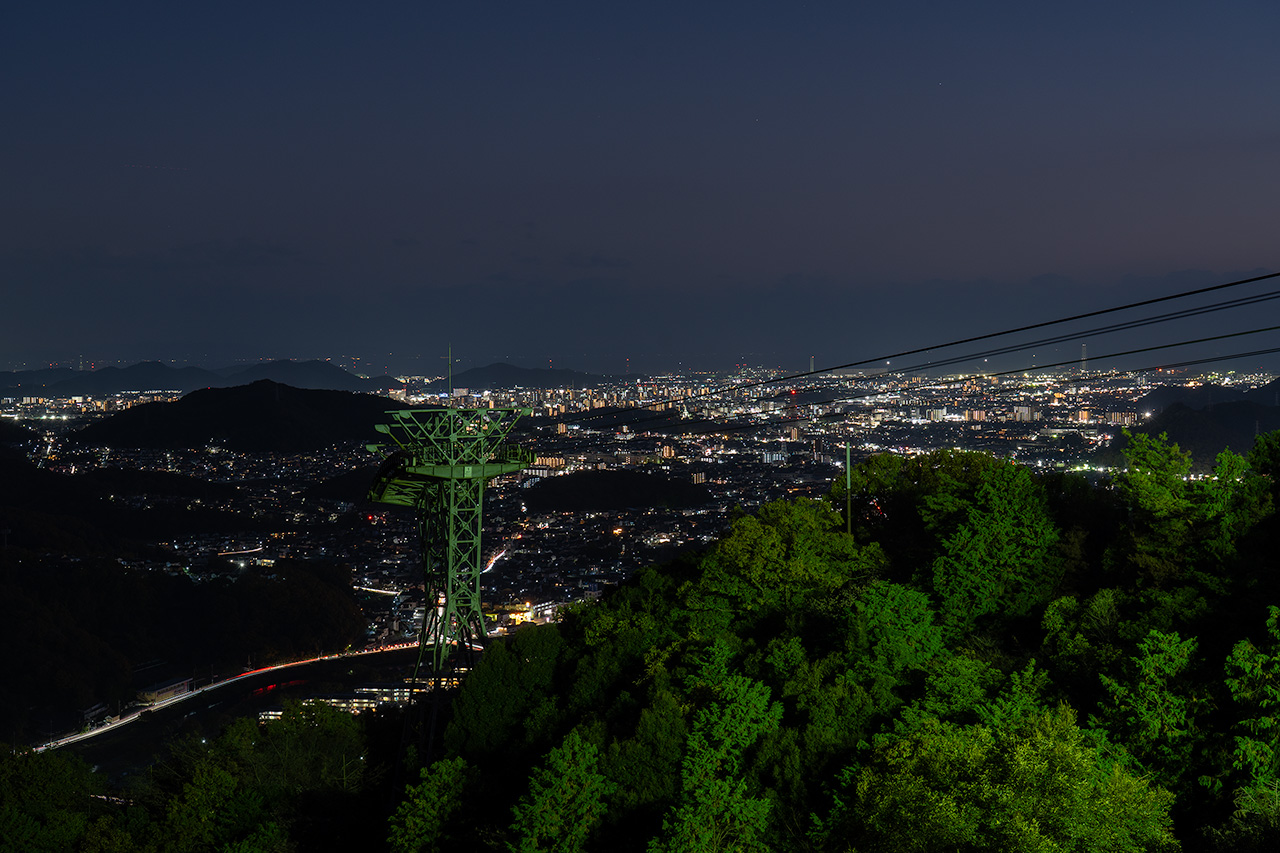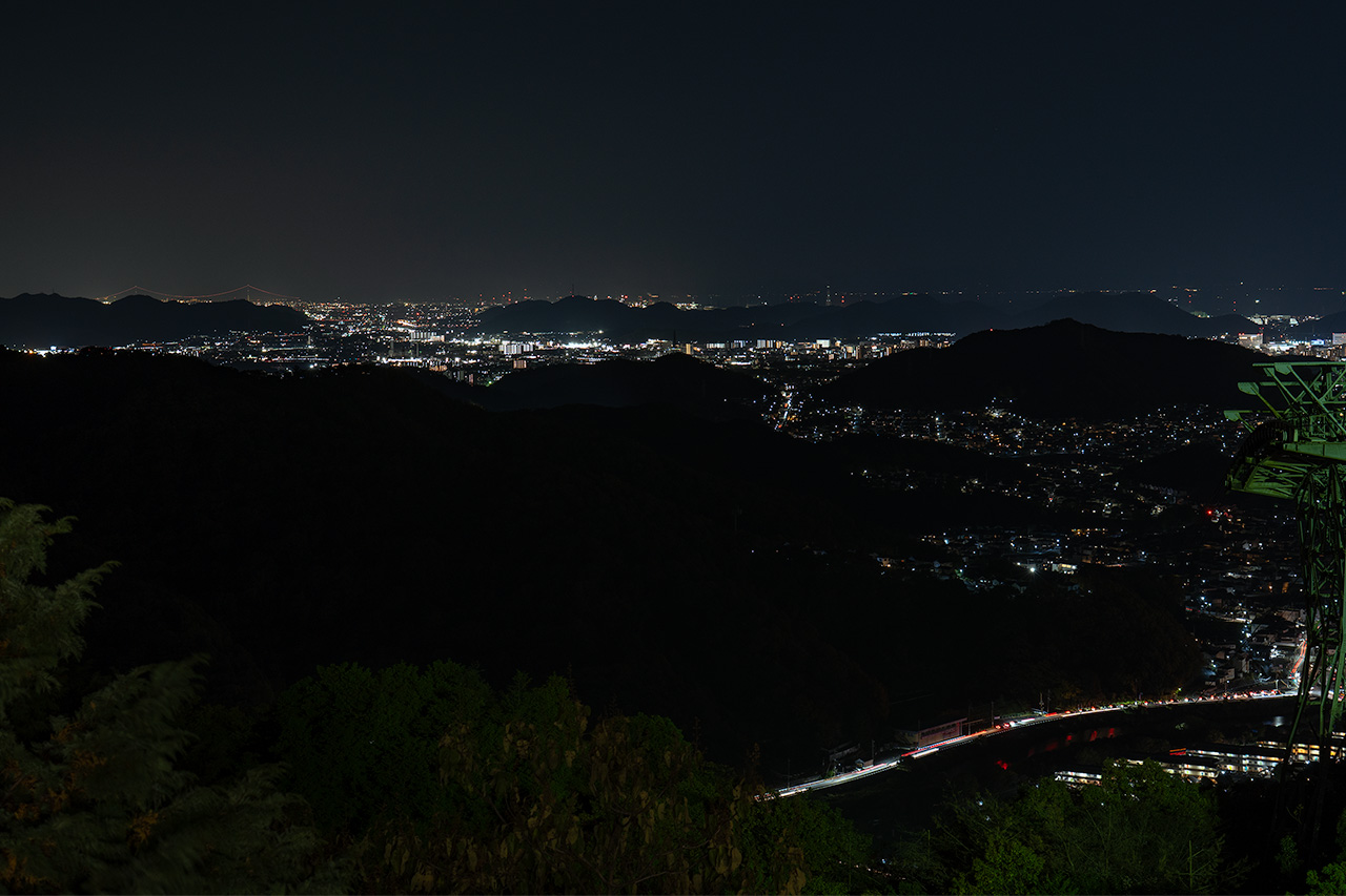 眼下には姫路市西部の夜景が広がり、空気が澄んでいれば遠くにはなりますが、明石海峡大橋も確認できます。また紅葉シーズンは、ここから徒歩15分ほどのところに圓教寺があり、摩尼殿(まにでん)の紅葉ライトアップも見物です。