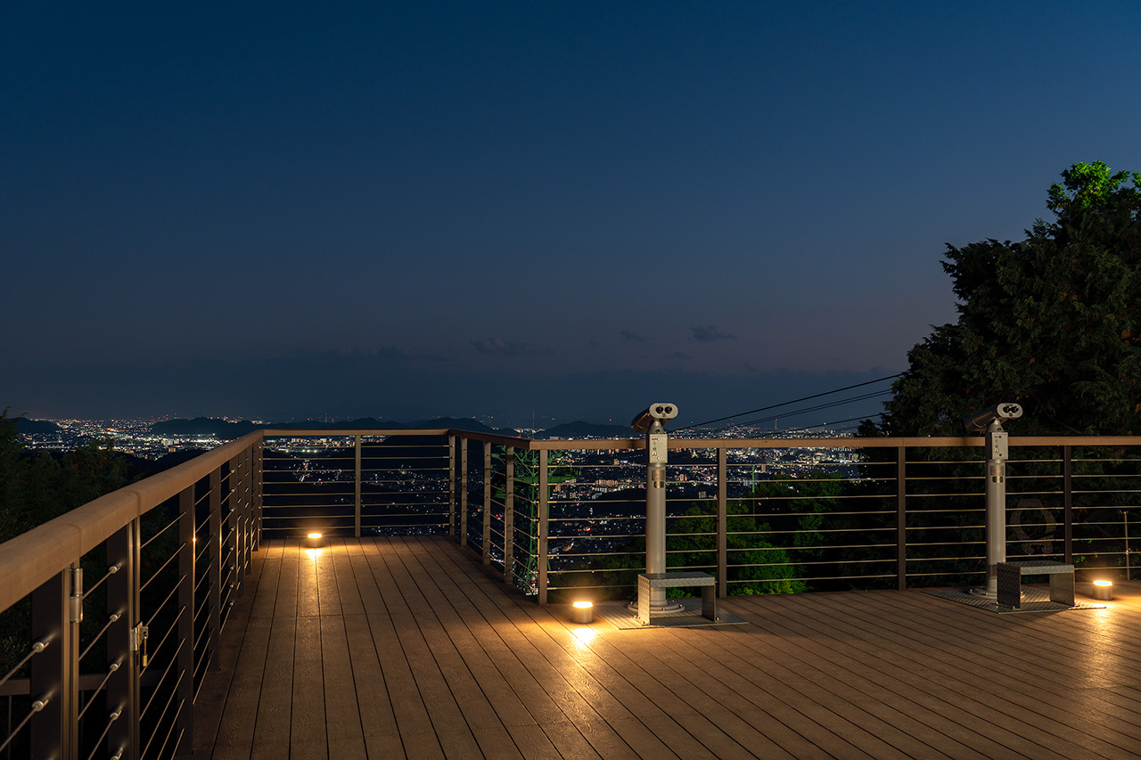山上駅に隣接したところに展望台があり、2022年にリニューアルして、これまでよりも少し高い場所に設置され、フットライトにより雰囲気も向上しました。