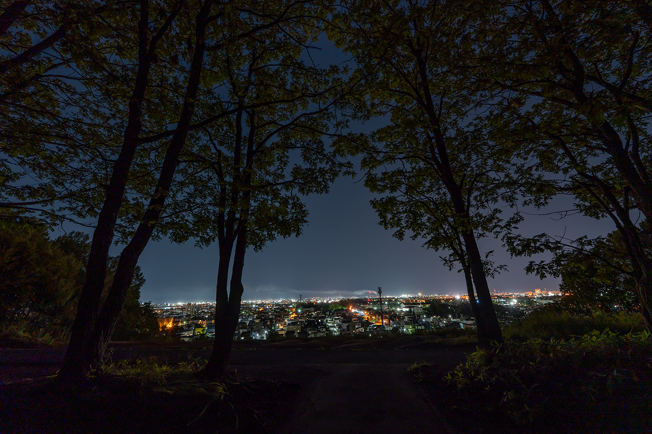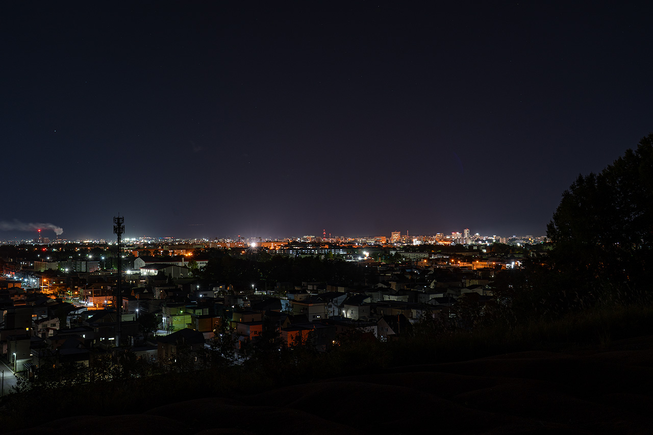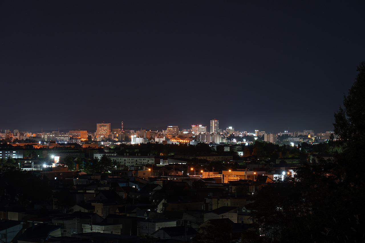駐車場からフラットな遊歩道を6分ほど進むと、旭川市中心部を望む展望広場があります。夜景のスケールは小規模ですが、視界は広く爽快感ある空間です。