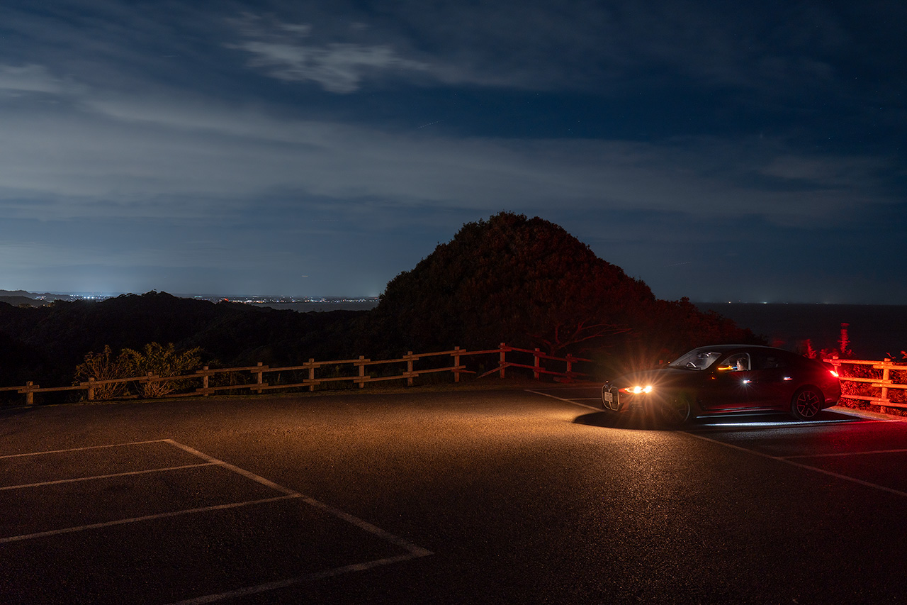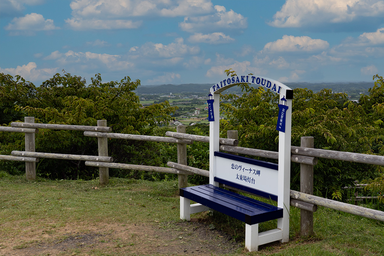 九十九里浜の最南端に位置する太東岬は、少し高台になっています。駐車場にクルマを停めて、展望台へ30秒ほど歩いていくと、JR長者町駅方面の夜景を楽しめます。かつては、視界は広かったようですが、2025年に取材時は木々の生長で視界は、かなり狭くなっています。