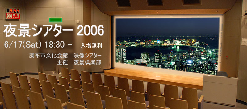 全国から集まった9名の夜景プレゼンターにより、日本だけに留まらず海外まで300枚を越える夜景映像をスクリーンで紹介させて頂きました。また、アンケート結果では90%以上の方にご満足して頂き、スタッフ一同嬉しく感じております。一方、夜景シアター2006では、準備不足による反省点もあり、お見苦しい点もありましたが、次回の夜景シアターでは、さらにクオリティの高いイベントを開催したいと考えております。